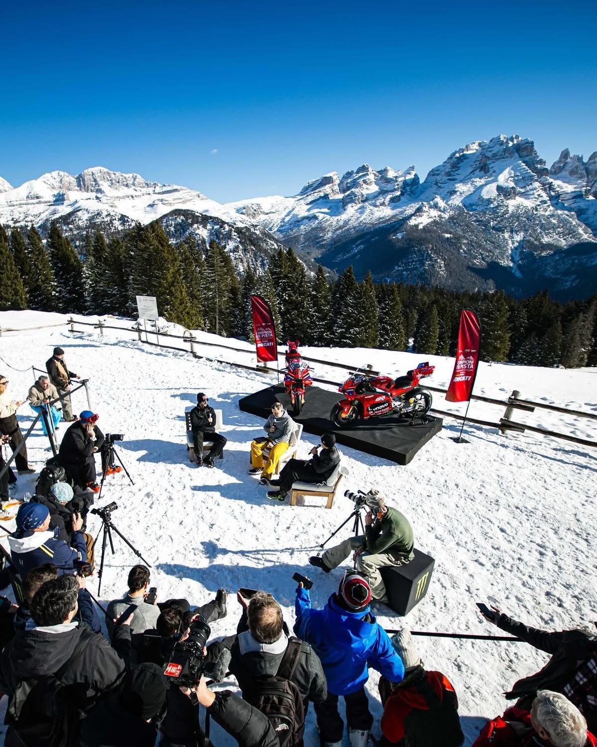 “Campioni in Pista” is an annual event organized by Ducati in Madonna di Campiglio, marking the start of the sporting season by presenting the Ducati Lenovo Team engaged in the MotoGp World Championship. It represents a significant moment for Ducati, consolidating the bond between the team, its riders and the community of fans, offering a preview of the new season and the team’s ambition.
