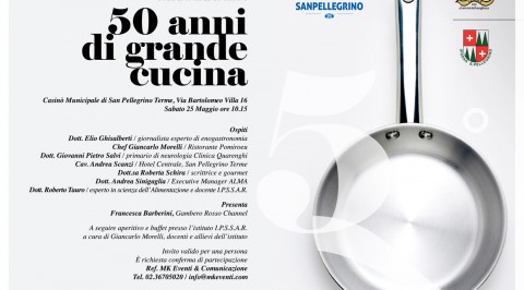I.P.S.S.A.R. San Pellegrino Terme celebrates on 25th of May its 50 years with leading experts: a celebration not to be missed in the historic and charming location of the Casino of San Pellegrino Terme. Between nutrition and health experts as Dr. Salvi (primary of Neurology department at Quarenghi Clinic ) and Dr. Tauro (expert in food science and IPSSAR professor), starred chefs such as Giancarlo Morelli (restaurant Pomiroeu), gourmet journalists as Roberta Schira and Elio Ghisalberti and educational experts as Cav. Scanzi and Dr. Sinigaglia, the school tells its own story, its philosophy and its future involving students in an informal and important discussion . Can’t miss a moment of healthy and good food by Giancarlo Morelli and students of the school.